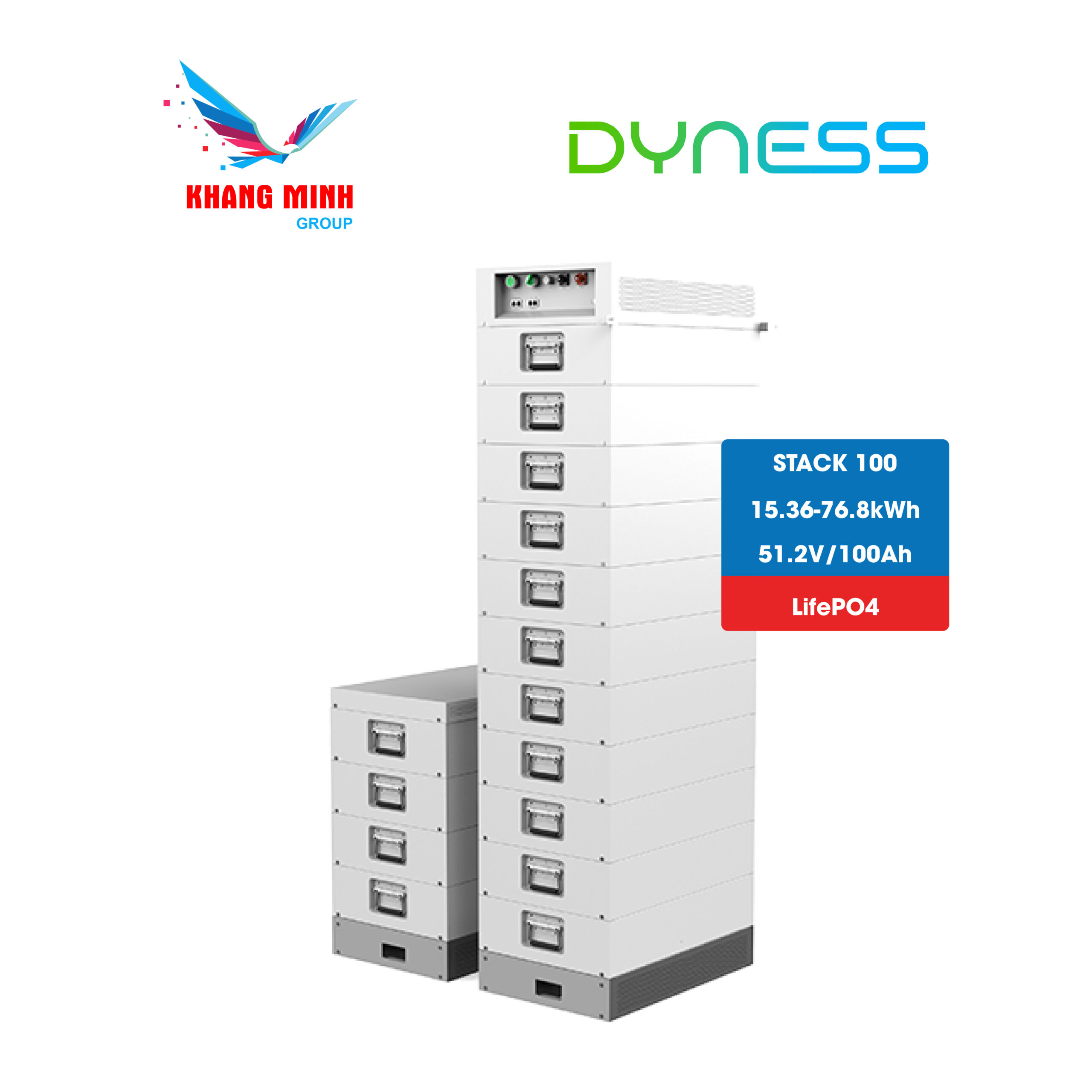 DYNESS STACK 100 là hệ thống pin lưu trữ với dải công suất linh hoạt từ 15.36kWh đến 76.8kWh. Sản phẩm phù hợp cho hộ gia đình, doanh nghiệp vừa và nhỏ. Đây là lựa chọn lý tưởng cho các hệ thống điện mặt trời cần giải pháp lưu trữ hiệu quả và an toàn.